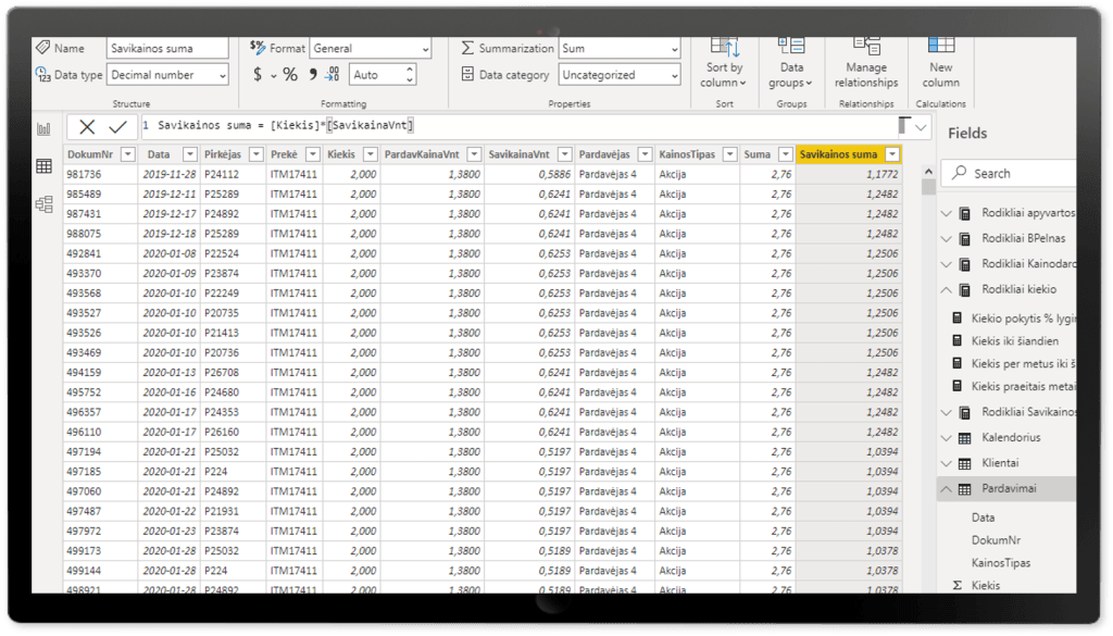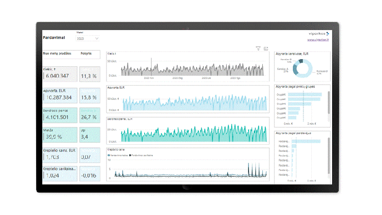 Vizualizavimo ir bendrinimo galimybės Power BI atveria jūsų įmonės informaciją netikėtais rakursais ir leidžia pamatyti tikras įžvalgas bei priimti tikslius sprendimus, paremtus kokybiška informacija.
