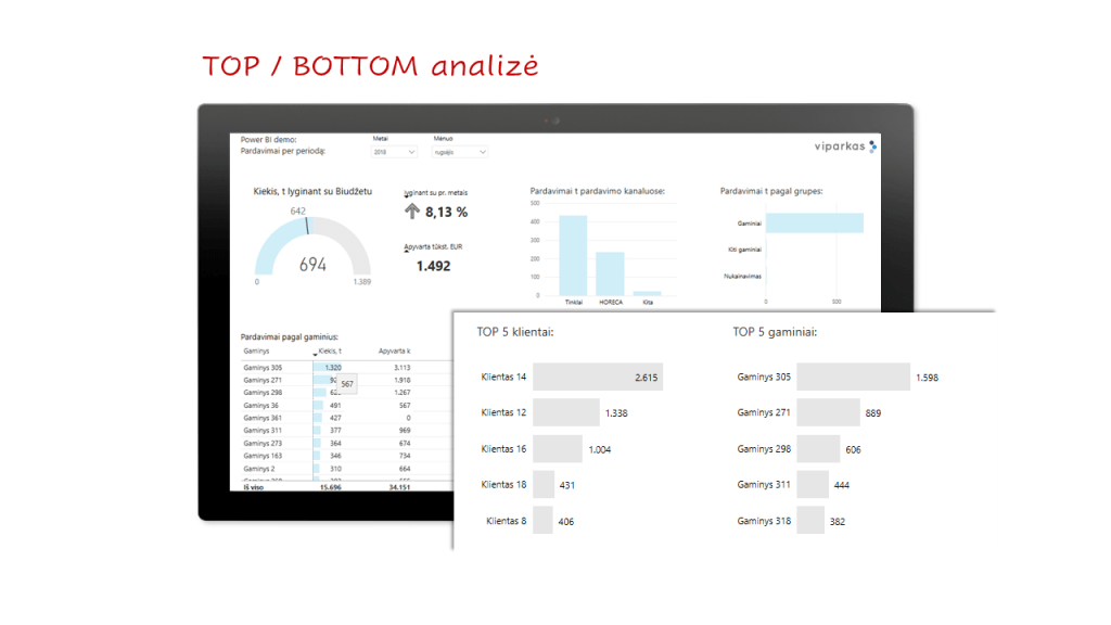 Pardavimų ataskaitose visada verta paanalizuoti kas yra geriausi ir blogiausi klientai, produktai, vadybininkai ar kiti pasirinkti segmentai.