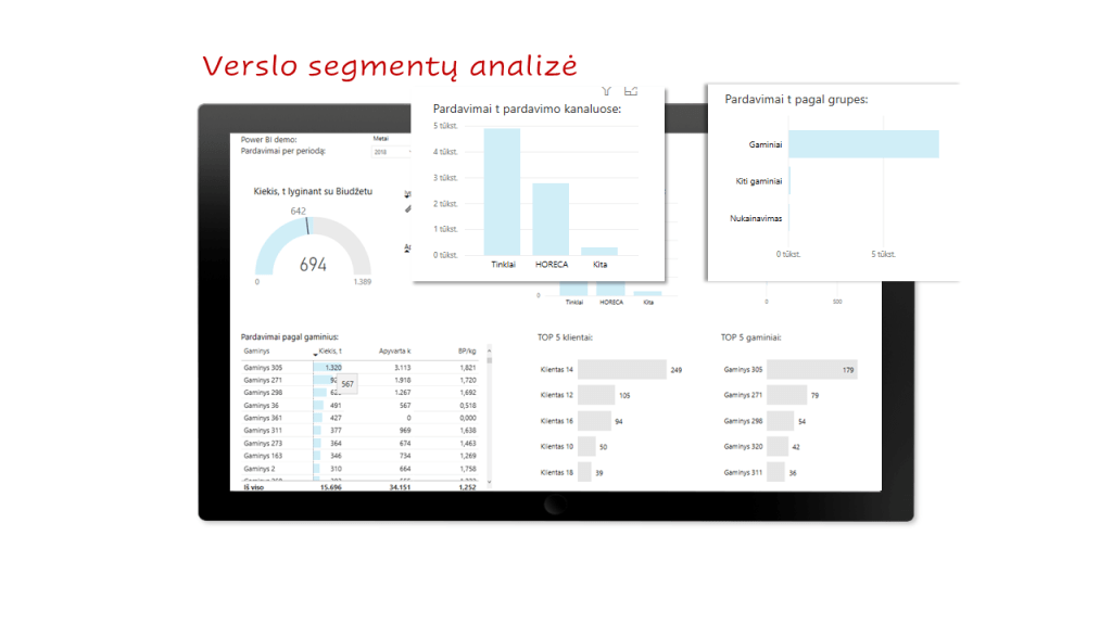 Peržvelgus laikotarpio pardavimų rodiklius, pokyčius lyginant su praėjusiais laikotarpiais, tikslų pasiekimo lygį – verta peržiūrėti šiuos duomenis filtruojant pagal segmentus, kuriuos įmonės nusistato pačios, pvz.: