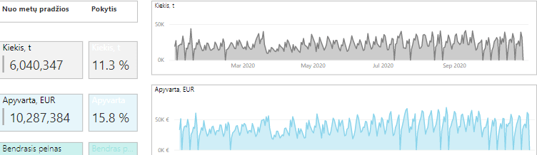 Teigiamas pardavimų pokyčio rodiklis rodo augimą, neigiamas – kritimą (mažėjimą).