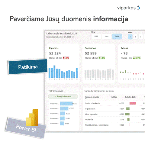 Vizuali verslo informacija su Power BI: sprendimo parengimas, konsultacijos, duomenų integracijos, rodiklių ir indikatorių sistemos sukūrimas, vizualizacijos, sukurtų sprendimų priežiūra bei vystymas.
