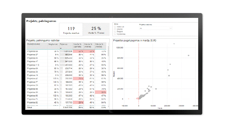 Projektų pelningumo ataskaitos yra svarbiausias kiekvieno tokių įmonių vadovo valdymo įrankis. Jei duomenys yra surenkami ir pateikiami operatyviai, tai padeda greitai diagnozuoti problemines sritis ir priimti sprendimus situacijų suvaldymui.