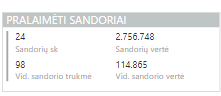 Pralaimėtų sandorių skaičius, vertė, vidutinė vertė –