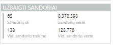 - Užbaigtų sandorių skaičius, vertė, vidutinė vertė,